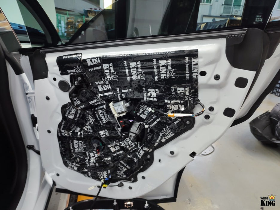 먼저 순정 철판면에 윈드킹 전용 방진매트를 꼼꼼하게 부착합니다.