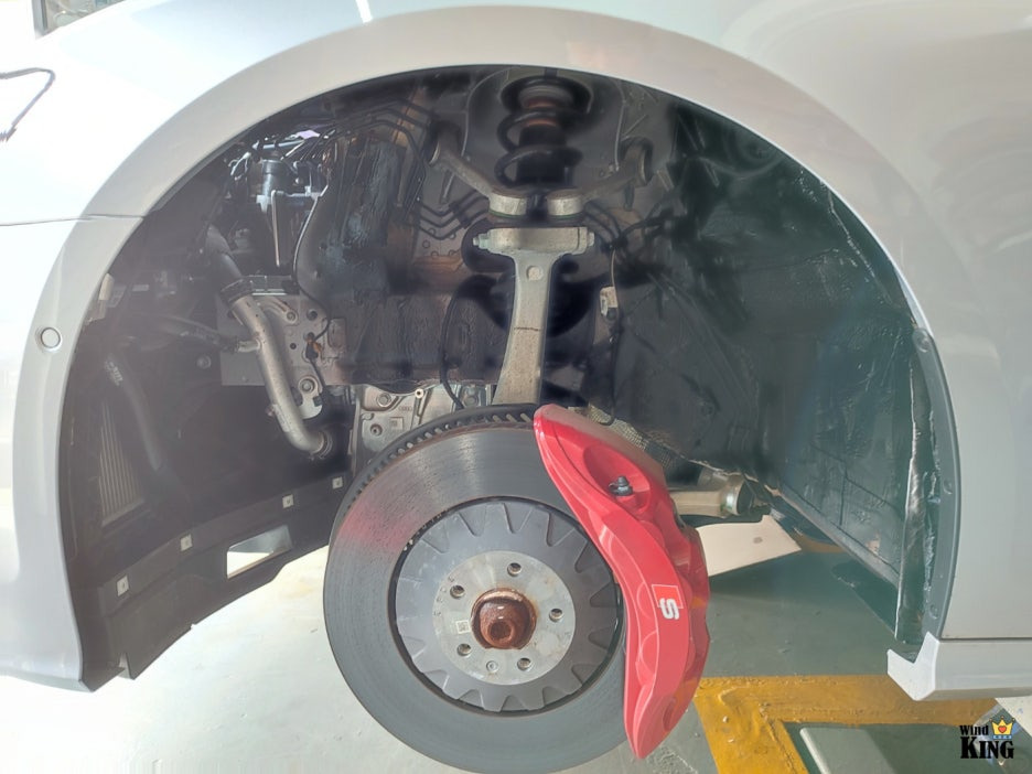 휠하우스 커버까지 탈거된 프론트 휀다 내부 모습입니다.