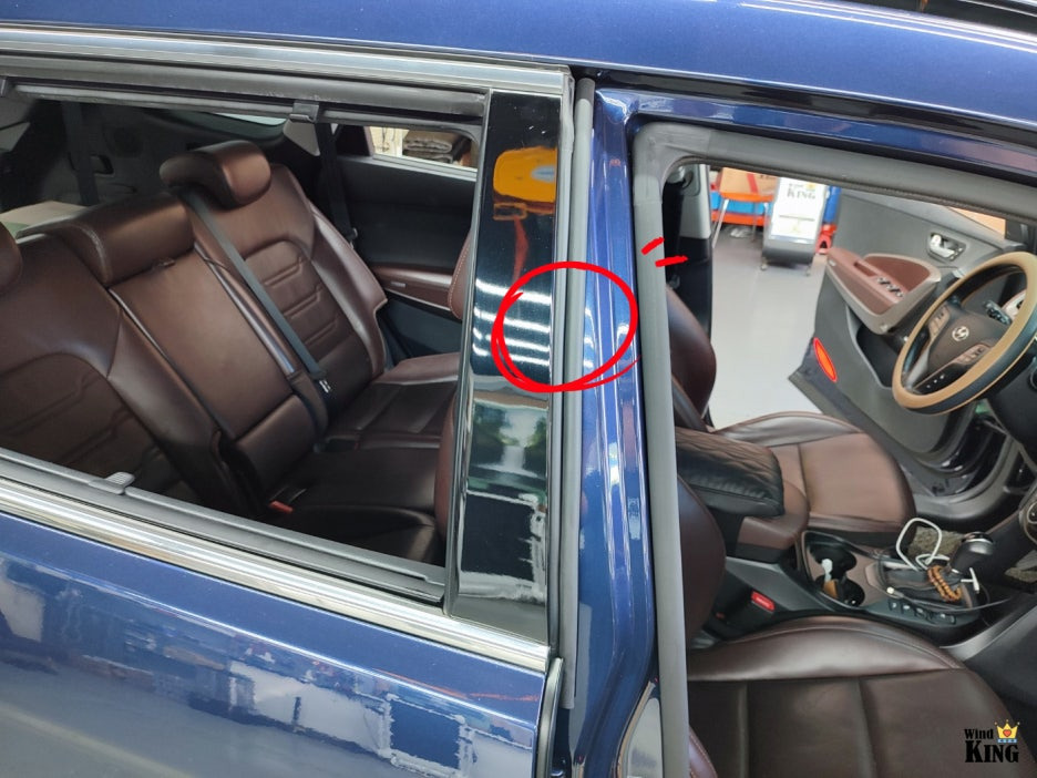 B필러 상하단에도 윈드킹 몰딩을 시공했습니다.