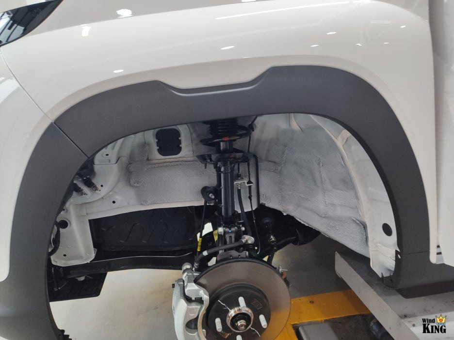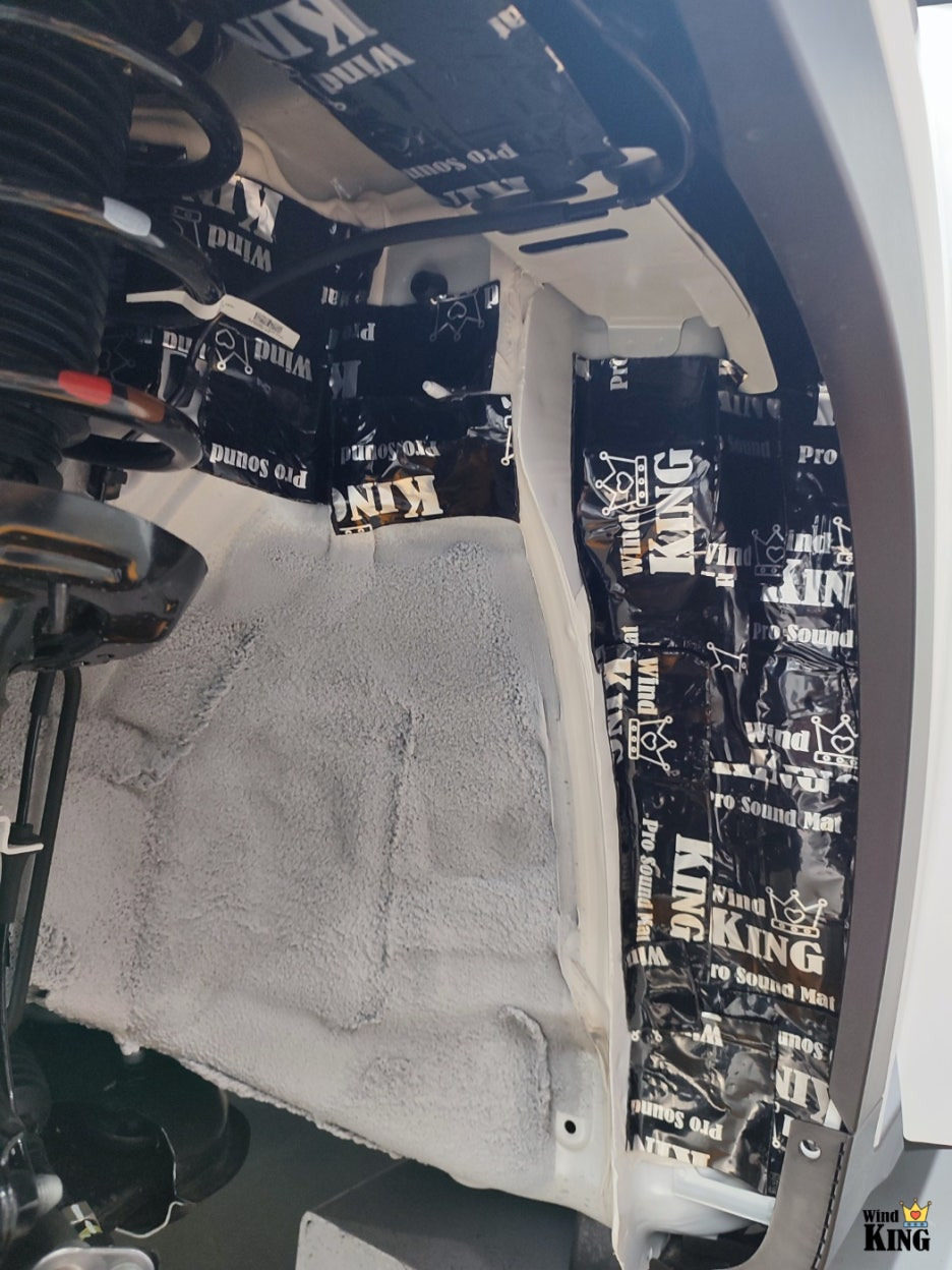 난연 성능을 갖춘 윈드킹 전용 방진매트를 밀착 시공했습니다.